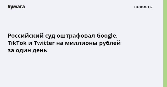Суд оштрафовал Google, TikTok и Twitter на миллионы рублей