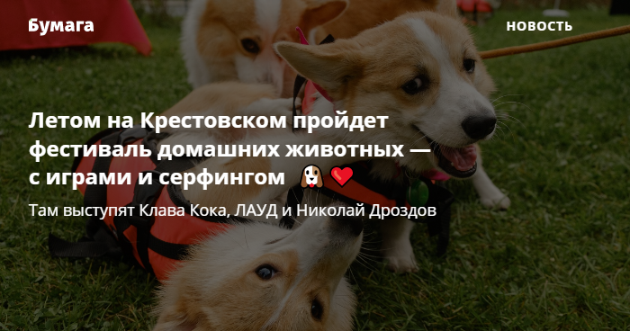 С 5 по 6 июня в петербургском Приморском парке Победы на Крестовском острове пройдет фестиваль для любителей домашних животных от команды Petshop Days. Подробности можно узнать на сайте мероприятия.