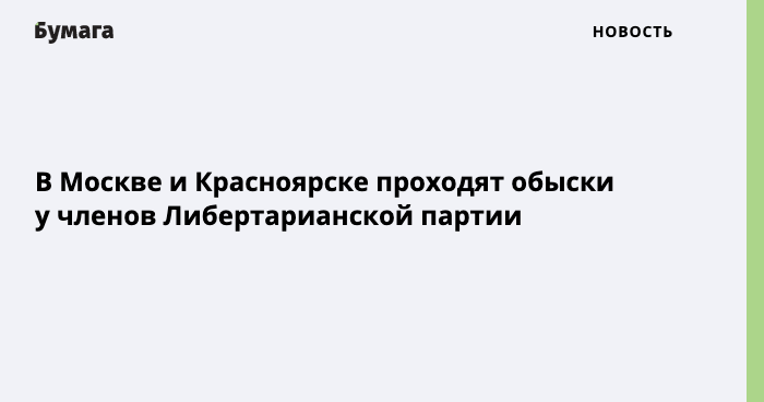 В Москве и Красноярске у членов Либертарианской партии проходят обыски. Об этом сообщает «МБХ медиа» со ссылкой на бывшего пресс-секретаря партии Александра Гуда.