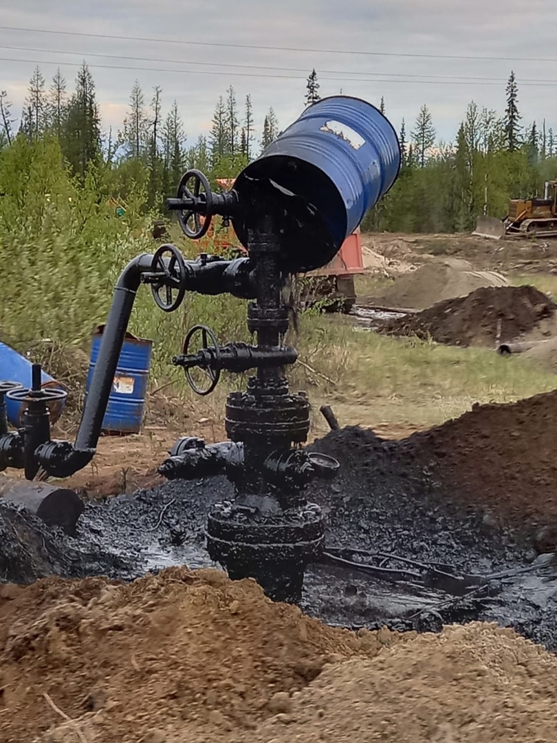 В "Лукойле" случившееся объяснили природным явлением "грифон" — самопроизвольный выход из нефтескважины горной породы. Содержимое относится к малотоксичным веществам.