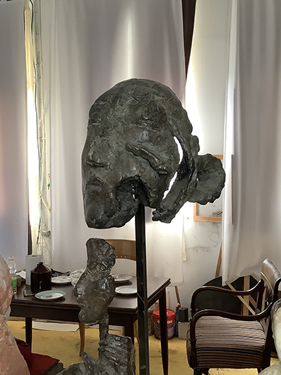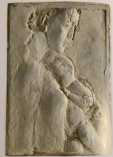 © Ирина Вольфсон Ян Раухвергер. Рельеф. 2002 Рельефная Мадонна наблюдает за тем, как ее создатель достает из тостера усохшие питы, кладет на тарелочку и несет в наполненную светом обитель. Из царства мрачного Харона на свет Божий, где Ян живописует, рисует и лепит. Здесь же стоит подиум с креслом для натуры, сейчас пустым. Только что его занимал мужчина. Он ушел, но остался — в виде портрета. Ян смотрит на него критическим взглядом.