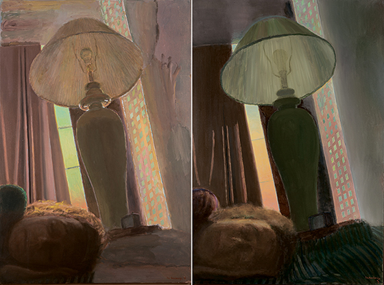 © Предоставлено Еленой Макаровой Ян Раухвергер. Вариации. 2020 — Есть такие вещи: возишься-возишься, а материал тебя не хочет. Он говорит: оставь меня! Скажем, начал писать красивым солнечным утром, а назавтра оно оказалось пасмурным. Что делать? Не буду же я на этом холсте продолжать! А я это уже увидел, я не могу остановиться. Беру другой холст. А тот остается таким, как был. Продолжаю. Тут еще и история с лампой другая вышла, не только свет… Утром спросонья смотрю на лампу, вижу иной ракурс. Но не могу же я работать, лежа в постели… Опять другая вещь. Не только свет, но и ракурс…