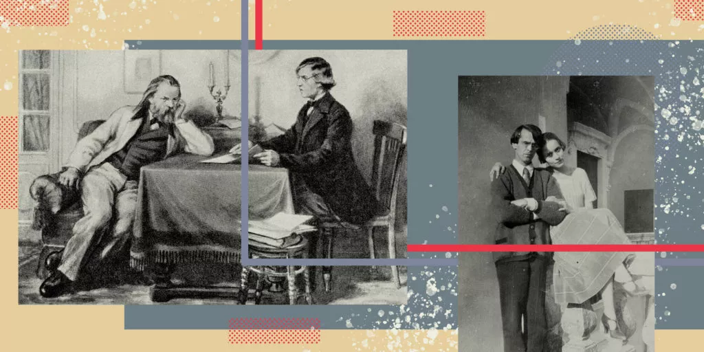 Слева: Александр Герцен и Николай Чернышевский в Лондоне, 1859. Справа: Владислав Ходасевич и Нина Берберова в Сорренто, 1925.