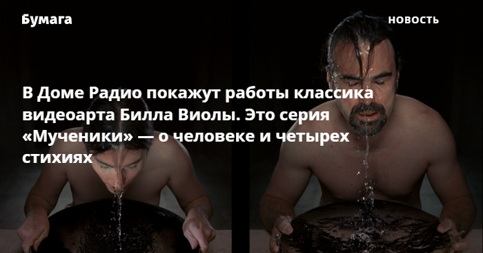 Работы признанного классика видеоарта Билла Виолы из серии «Мученики» покажут в Петербурге в Доме Радио, сообщили «Бумаге» организаторы. Выставка пройдет со 2 по 20 июня.