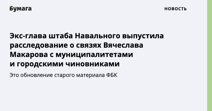 Экс-глава штаба Навального выпустила расследование о связях Вячеслава Макарова с муниципалитетами и городскими чиновниками