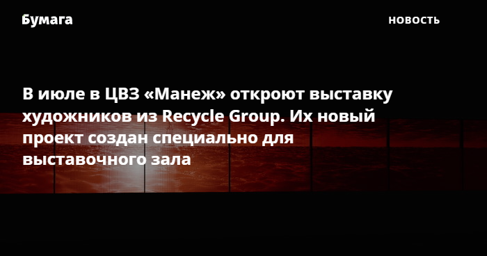 В июле в ЦВЗ «Манеж» откроют выставку художников из Recycle Group