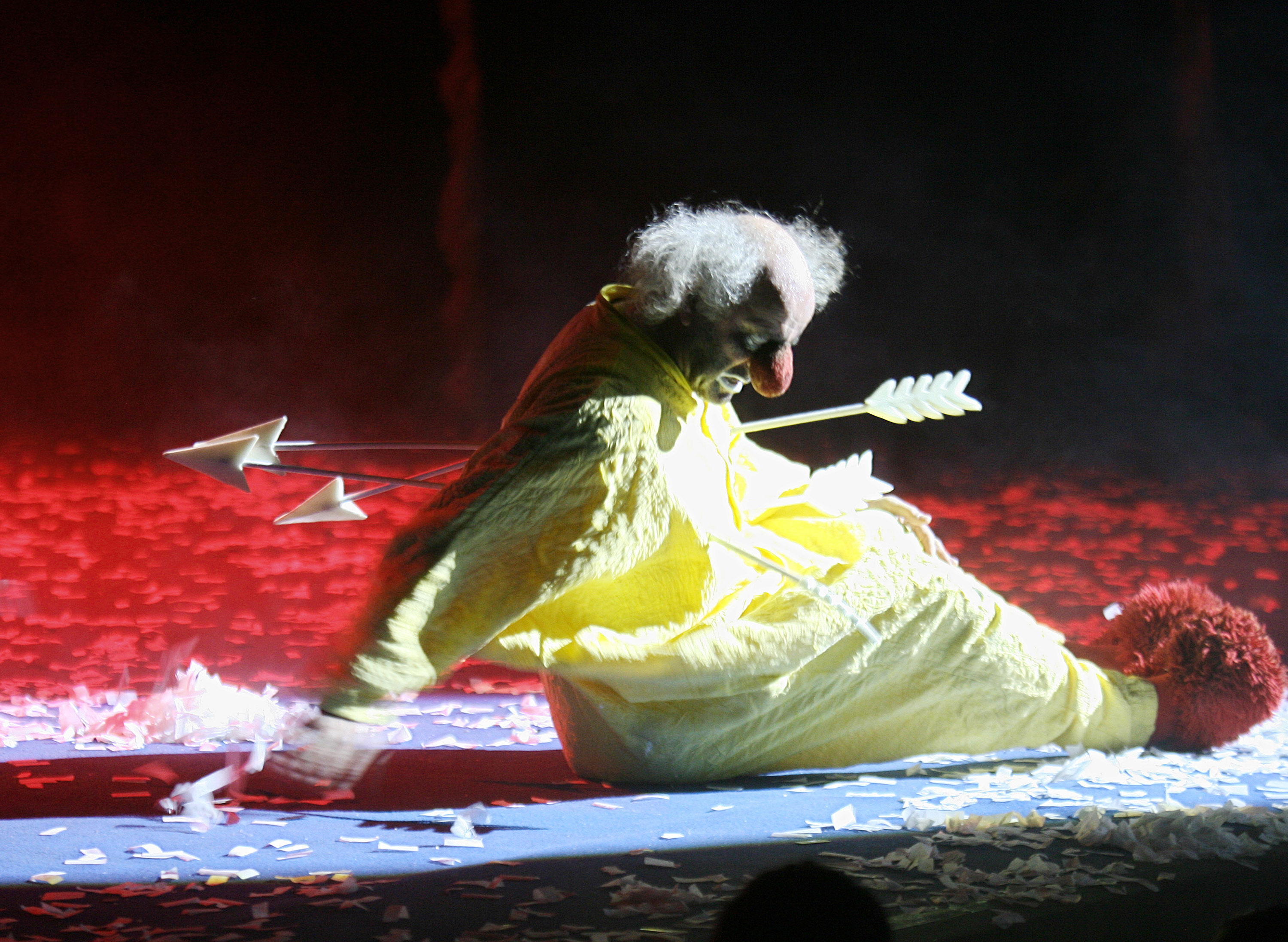 – Это костюмы для "Снежного шоу". В каждом моем спектакле всегда фантастические костюмы. Французы вообще встречают по костюму. Поэтому "Снежное шоу" во Франции в первую очередь и победило, потому что там эти фантастические костюмы. Я сам их придумываю, и моя жена Лена мне очень много помогает. В карикатуре изменяются формы тела, и Бахтин в своих работах писал, что это преувеличение всех элементов – и живота, и ушей. Поэтому возникли длинные башмаки, раз возникли длинные башмаки, возникли длинные уши у шляпы и так далее. Это постепенная трансформация, которая нужна клоуну для того, чтобы он выглядел не как обычный человек, заинтересовал своим необычным поведением и смыслом жизни.