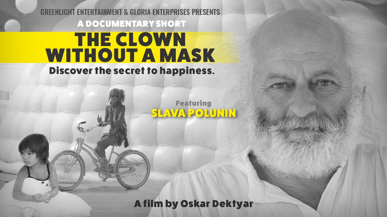 Оскар Дехтярь создал портрет клоуна-философа, гражданина мира, ребячливого и мудрого, изобретательного и наивного, ищущего красоту в невзрачном, преображающего хмурую реальность. Солнечный человек шагает по снежной равнине, и цветы появляются из-подо льда. Театр Полунина постоянно путешествует, и Оскар Дехтярь наблюдал за тем, что происходит на сцене и за кулисами в разных странах. "Клоун без маски" снимался в доковидную эпоху, недавно начал путешествие по кинофестивалям и уже получил награды в Калифорнии на фестивале в Беверли-Хиллз и в Праге на фестивале независимого кино.