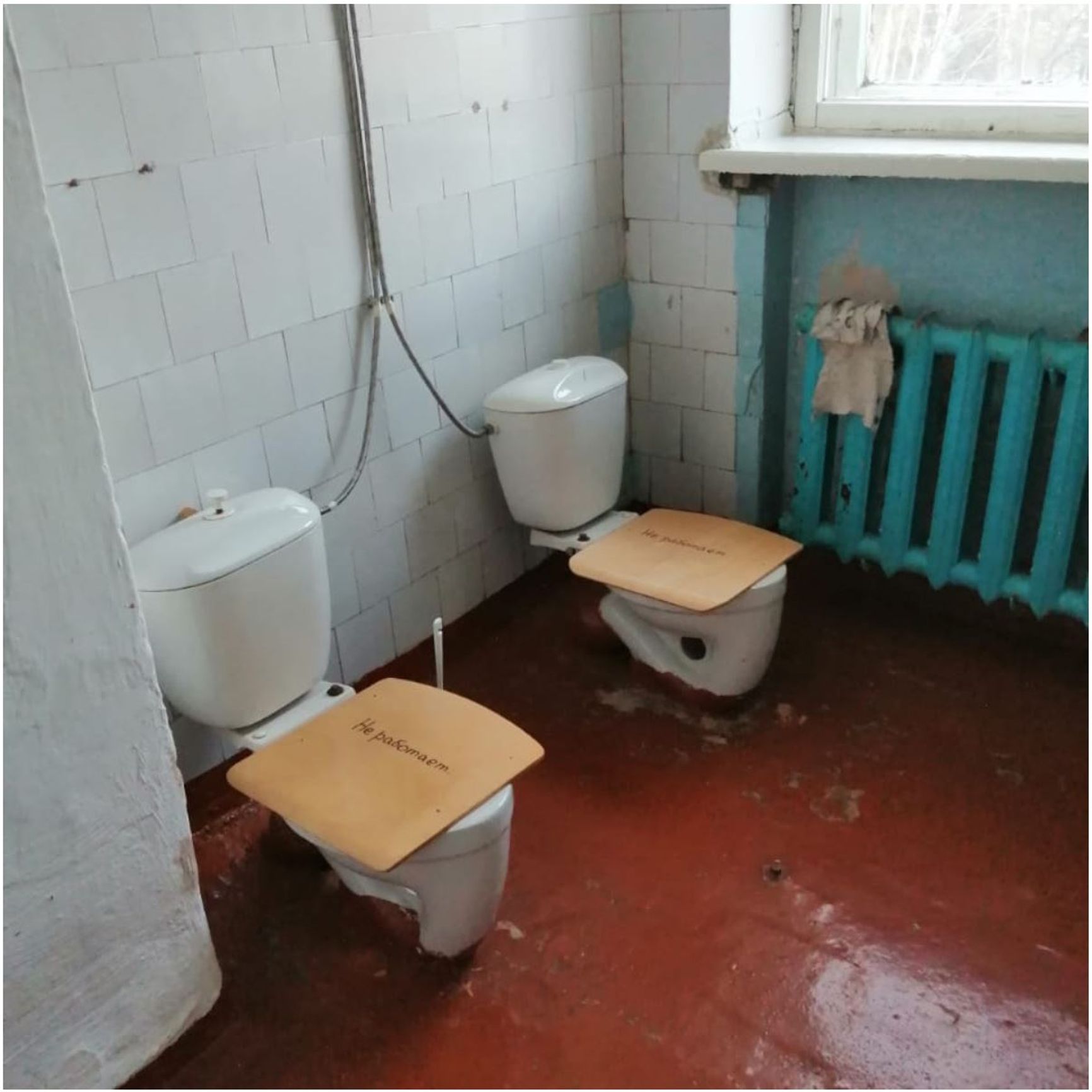 6) Миньяр. «Туалет для мальчиков. Требует капитального ремонта. Полностью от времени сгнили канализационные трубы и унитазы пришлось отключить».