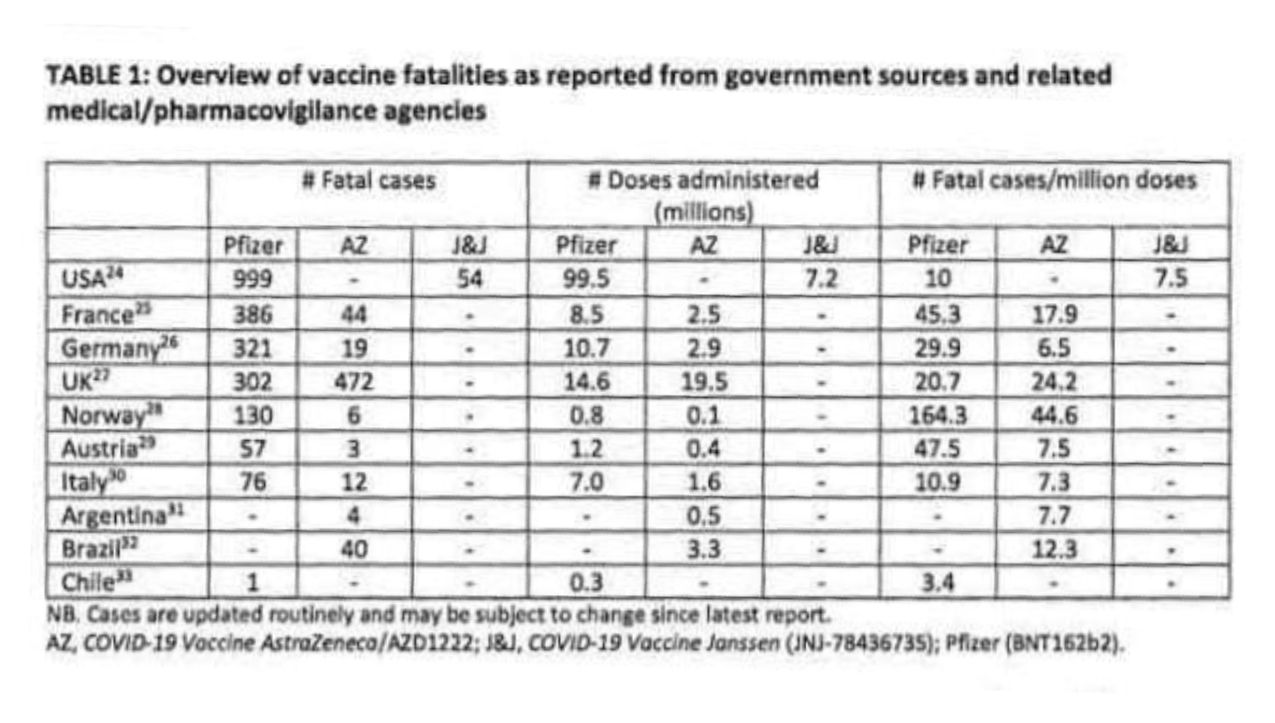 В качестве доказательства этого тезиса демонстрировалась таблица смертности населения, вакцинированного Pfizer, AstraZeneca и Johnson&Johnson в разных странах. Составители инструкции отдельно просили блогеров показать ее и сообщить, что эти данные были опубликованы в Le Monde. На самом деле это ложная информация.