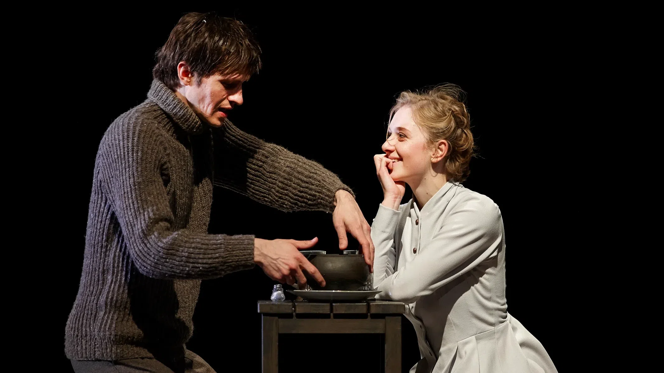 Несмотря на почти пятичасовой объем, спектакль не утомляет ни в одном моменте действия. Странствия заглавного героя романа от человека к человеку, от события к событию, от одного впечатления к другому прочерчены внятно и понятны даже тем, кто пока не прочел знаменитого романа. Сценический сюжет сохраняет логику романного повествования, а композиция словно наследует поэтику автора: кружевная вязь мизансцен, подвижная, изменчивая светотень, летучие передвижения фигур в разреженной пустоте сцены, перетекание артистов с одной роли на другую, игра на легких касаниях и осторожных прикосновениях — к тексту, к партнеру, к смыслу романа, к тайне поэзии.