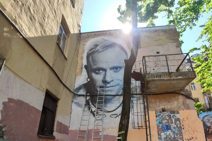 Стрит-арт с вокалистом британской электронной группы The Prodigy Китом Флинтом появился во дворе рядом с рок-магазином Castle Rock на Лиговском в июле прошлого года.