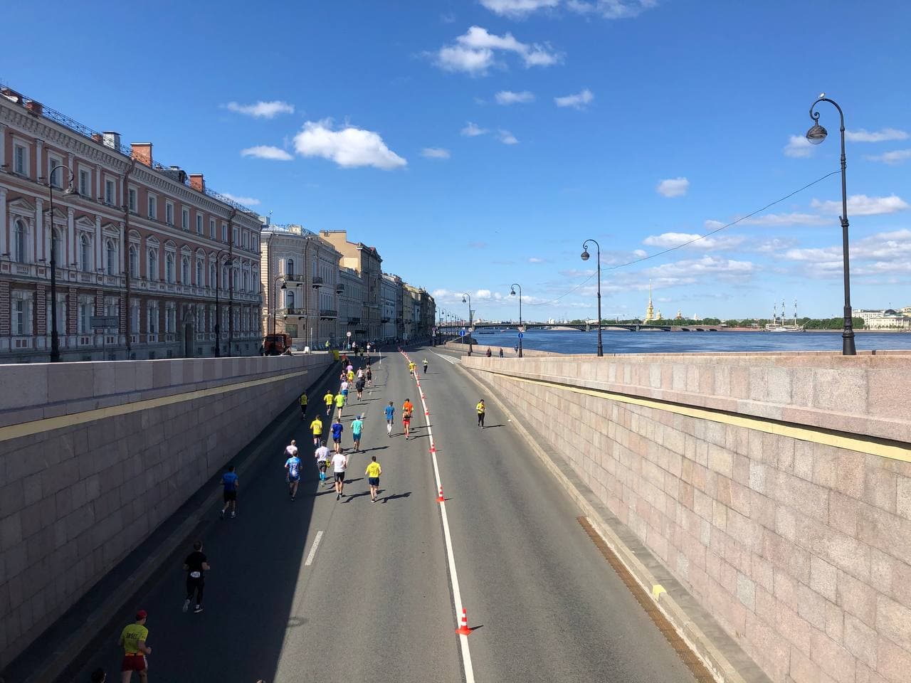 По оценкам организаторов, в полумарафоне должно было принять участие около 15 тысяч человек. Как отмечает корреспондент «Бумаги», около 10:30 сотни спортсменов пробежали под Литейным мостом и по набережной Кутузова. Первые из них кричали: «Бег — сила!»