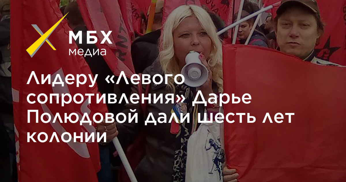 Второй западный окружной военный суд в Москве приговорил лидера «Левого сопротивления» Дарью Полюдову к шести годам колонии общего режима по делу об оправдании терроризма и призывах к нему. Об этом сообщает адвокат Леонид Соловьев, сотрудничающий с «Сетевыми Свободами».