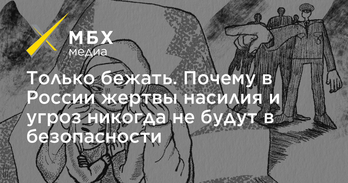 Случаев, когда жертвы насилия не могут рассчитывать на защиту со стороны правоохранительных органов, в России множество – точного количества не сможет назвать ни один правозащитник. Вариант спасения – это побег. Правозащитные организации могут помочь людям в первое время – предоставить убежище, найти работу, разобраться с документами, получить психологическую помощь. Но никто не может гарантировать, что человек после этого будет в безопасности — даже если им удалось выехать за пределы России. «МБХ медиа» рассказывает, почему жертвам насилия так сложно спрятаться от преследования и что может (но не делает) для их защиты Российская Федерация.