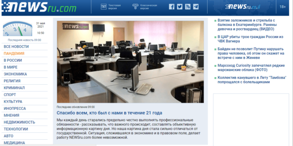 Издание Newsru.com объявило о закрытии из-за политической ситуации в стране после более чем 20 лет работы