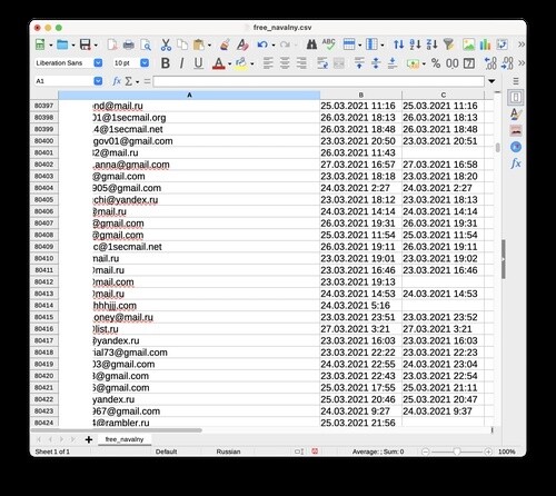 - Время, указанное в слитых данных — это время рассылки имейлов с просьбой подтвердить свою регистрацию на сайте, то есть утечка была не с сайта, а с сервиса, который делает рассылки. Сторонники Навального пользовались почтовым сервисом «Мейлган»;
