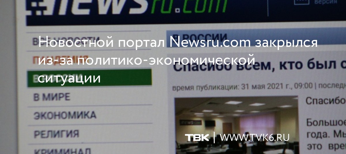 Сайт Newsru.com объявил о закрытии редакции. Портал больше не будет публиковать новости, но сохранит архив. 31 мая 2021 г. на главной странице появилось сообщение от имени сотрудников, в котором они объяснили причины закрытия.