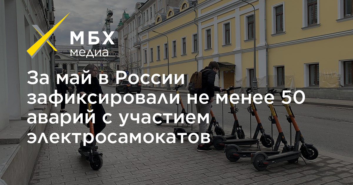 В России в мае зафиксировали не менее 50 дорожно-транспортных происшествий с участием электросамокатов, в которых пострадали 52 человека, двое погибли. Данные «МБХ медиа» собрало на основе сообщений СМИ.