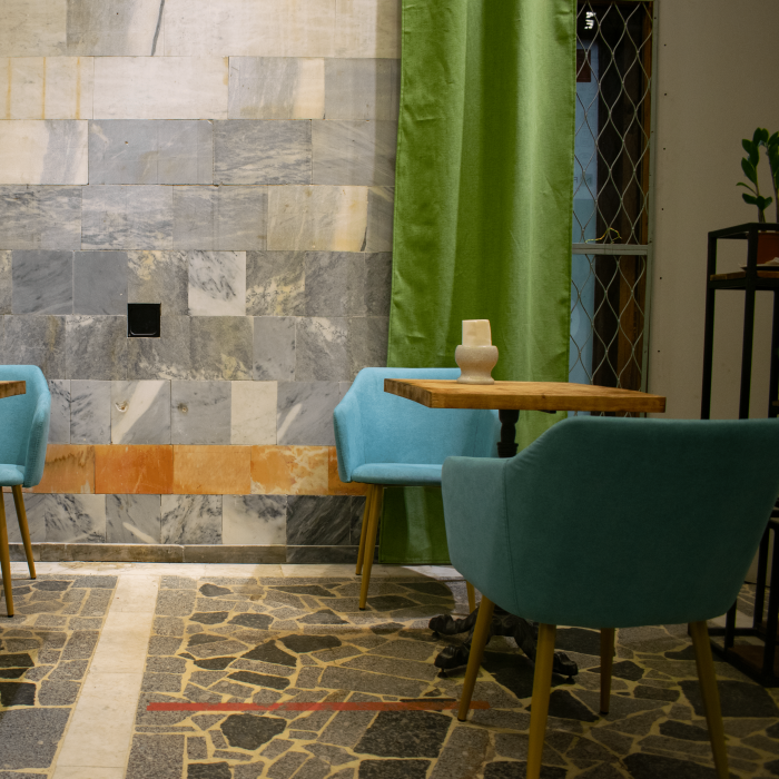 — Атмосфера старой грузинской квартиры, винтажные люстры и мебель, ковры и картины, свечи и «бабушкина» посуда. Самый шик — столы на втором этаже под стеклянной крышей.