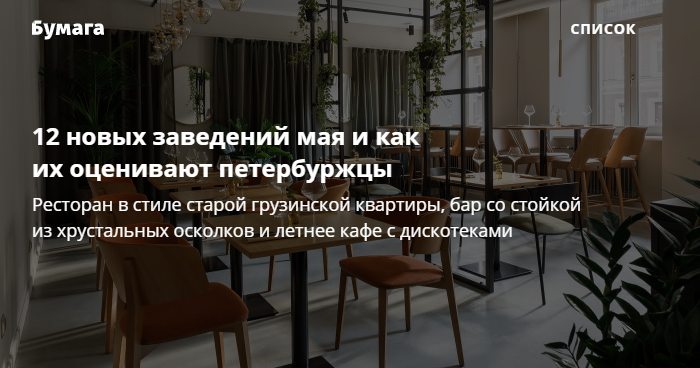 12 новых заведений мая и как их оценивают петербуржцы