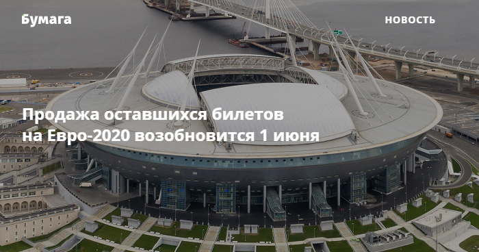 Продажа оставшихся билетов на Евро-2020 возобновится 1 июня