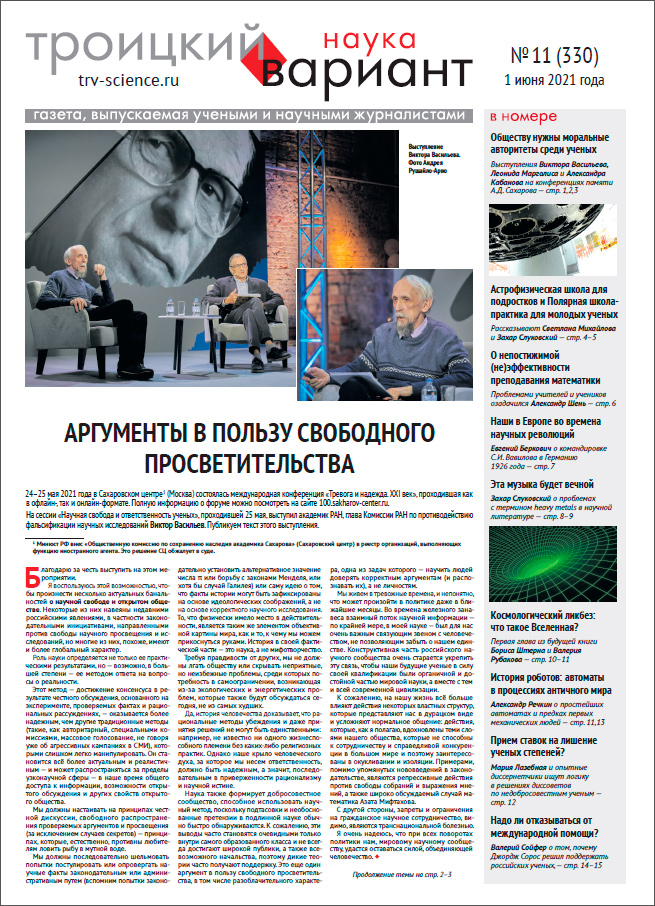 Весь номер газеты «Троицкий вариант — Наука» № 330 от 1 июня 2021 года в PDF