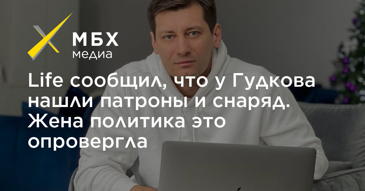 Издание Life сообщило, что у задержанного накануне политика и бывшего депутата Госдумы Дмитрия Гудкова во время обыска обнаружили патроны и снаряд. Супруга политика Валерия Гудкова в разговоре с «МБХ медиа» опровергла эту информацию.