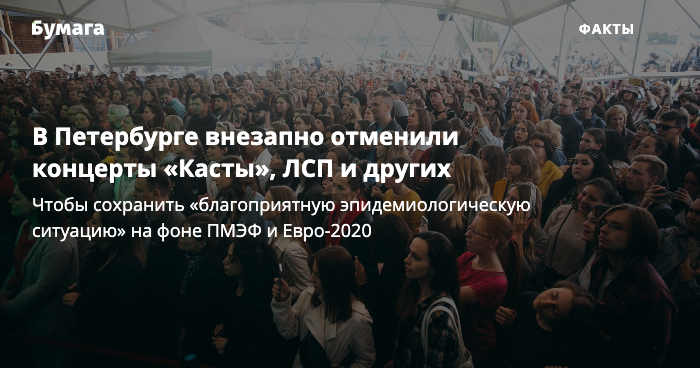В комитете переносы объясняют сохранением благоприятной эпидемиологической обстановки на фоне ПМЭФ, Евро-2020 и «Алых парусов». При этом пока что объявлено только о переносах выступлений, совпавших с ПМЭФ, а меры не коснулись, например, театров.