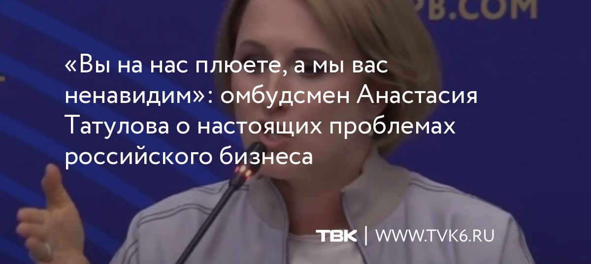«Вы на нас плюете, а мы вас ненавидим»: омбудсмен Анастасия Татулова о настоящих проблемах российского бизнеса