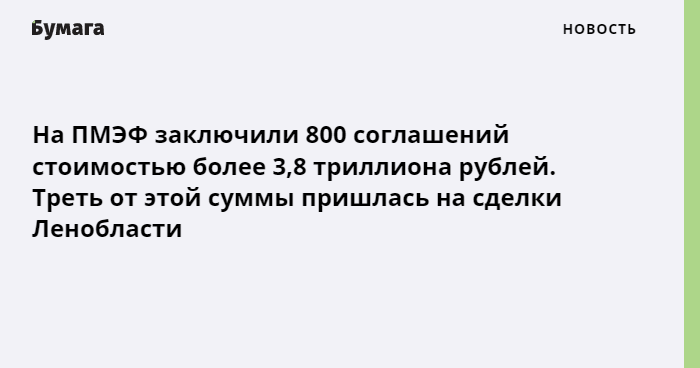 На ПМЭФ заключили более 800 соглашений на 3,8 триллиона рублей