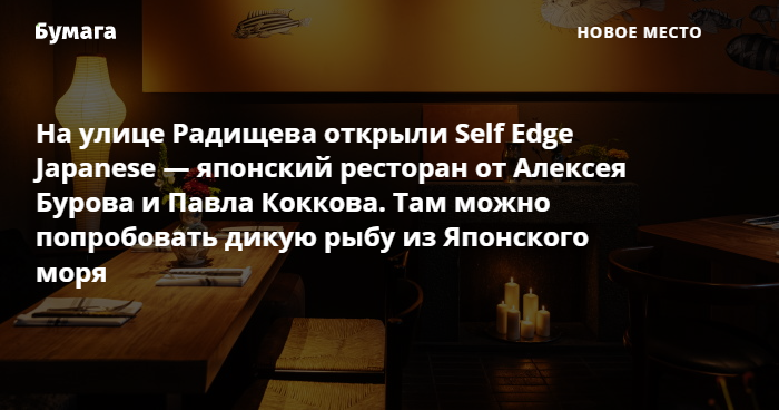 На улице Радищева открыли Self Edge Japanese — японский ресторан от Алексея Бурова и Павла Коккова