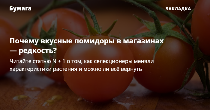 Издание N+1 выпустило большой материал о том, почему вкусные помидоры в магазинах стали редкостью. Журналисты изучили научную периодику разных лет и рассказали, как селекционеры меняли характеристики растения и можно ли вернуть плодам аромат и вкус.