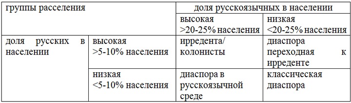 Таким образом, русская диаспора на постсоветском пространстве будет приобретать три основные формы: