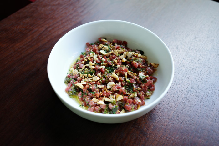 Гостям предлагают комфортную повседневную еду с авторскими акцентами от Марии Дементьевой: тартар из говядины сопровождают черемшой и фундуком, а холодный томатный суп — страчателлой и эстрагоном. На кухне используют фермерские продукты и специалитеты из разных стран: от японских устриц до итальянских сыров.