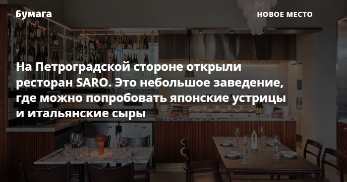 Ранее создатели SARO работали в Ezo Izakaya, «Ателье Tapas & Bar» и других петербургских заведениях