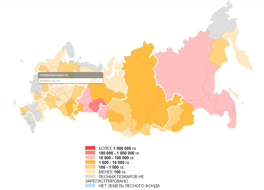 Псковская область занимает 45 место по площади лесных пожаров