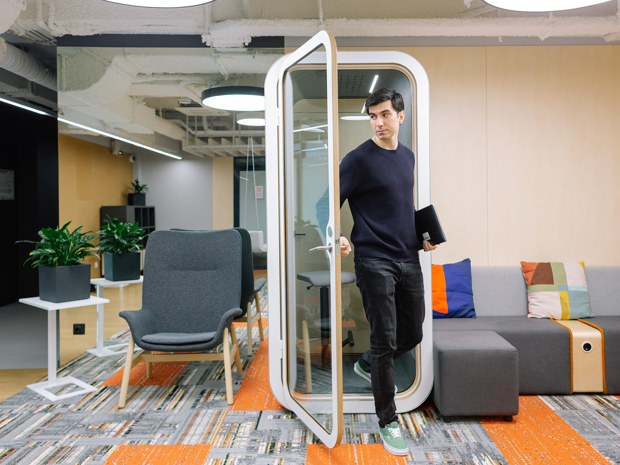 Работать удаленно я стараюсь как можно реже. Для меня важен ритуал похода в офис: пока я туда добираюсь, настраиваюсь на работу, и, оказываясь в своем кабинете, готов полностью включиться в нее. Кроме того, я люблю общаться с коллегами лично. Для меня очень важна невербальная коммуникация. Если мы с командой обсуждаем что-то онлайн, особенно с выключенными камерами, мне бывает сложно понять эмоции коллег и то, как стоит воспринимать их слова. В итоге появляется стресс, которого не бывает при личном общении.