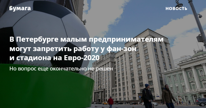 В пресс-службе комитета по имущественным отношениям (КИО) сказали «Бумаге», что информировали о запрете работы нестационарных торговых объектов во время Евро-2020 весной, но в будущем еще возможны изменения. КИО опирался на положения федерального закона № 108 о подготовке и проведении в России чемпионата, который запрещает деятельность некоторых точек.