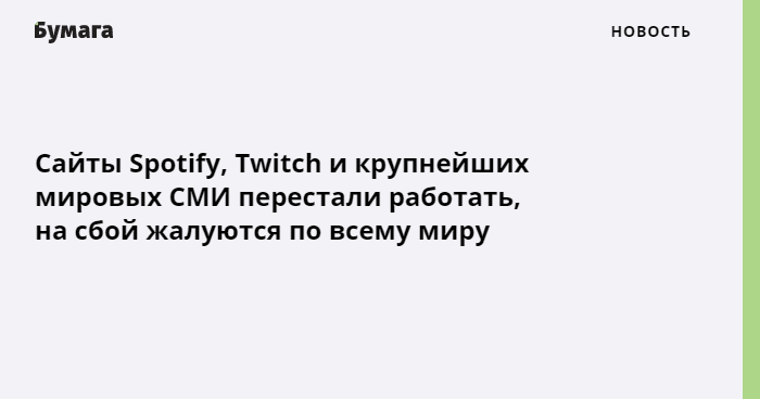 По данным Downdetector, на проблемы с доступом к сайтам жалуются пользователи Spotify, Twitch, Reddit и Github. Сбой также затронул сайты крупнейших мировых СМИ, среди которых The Guardian, The New York Times, BBC, Financial Times и CNN. Проблемы наблюдаются по всему миру.