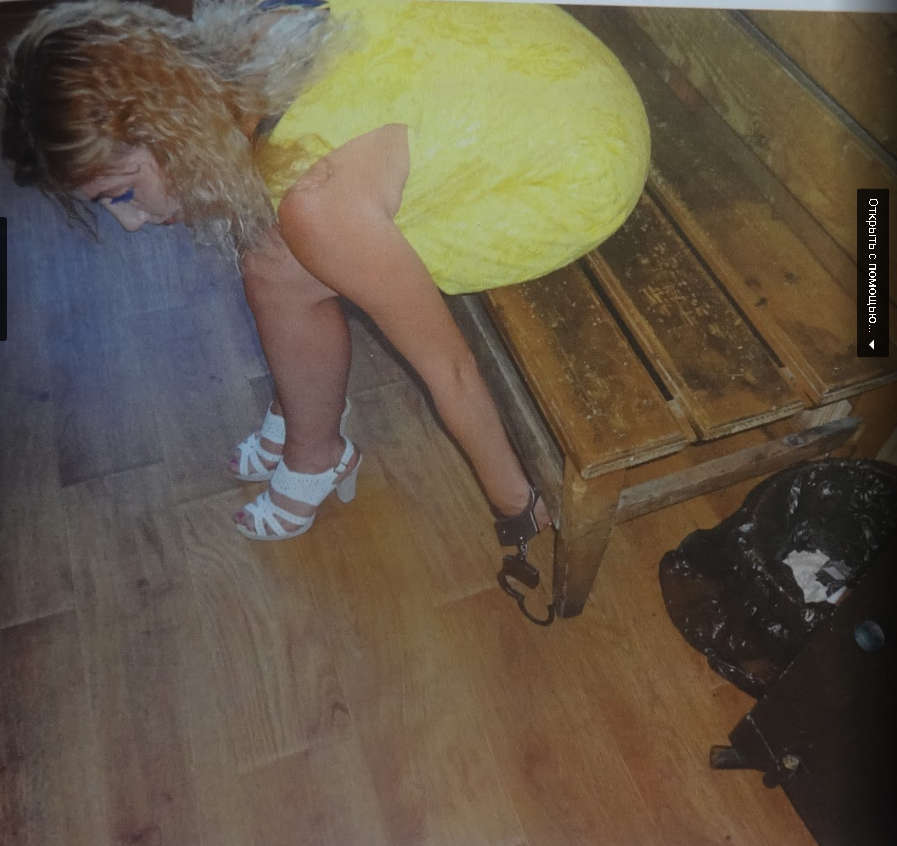 Марина Рузаева пристегнута наручниками к скамейке во время следственного эксперимента