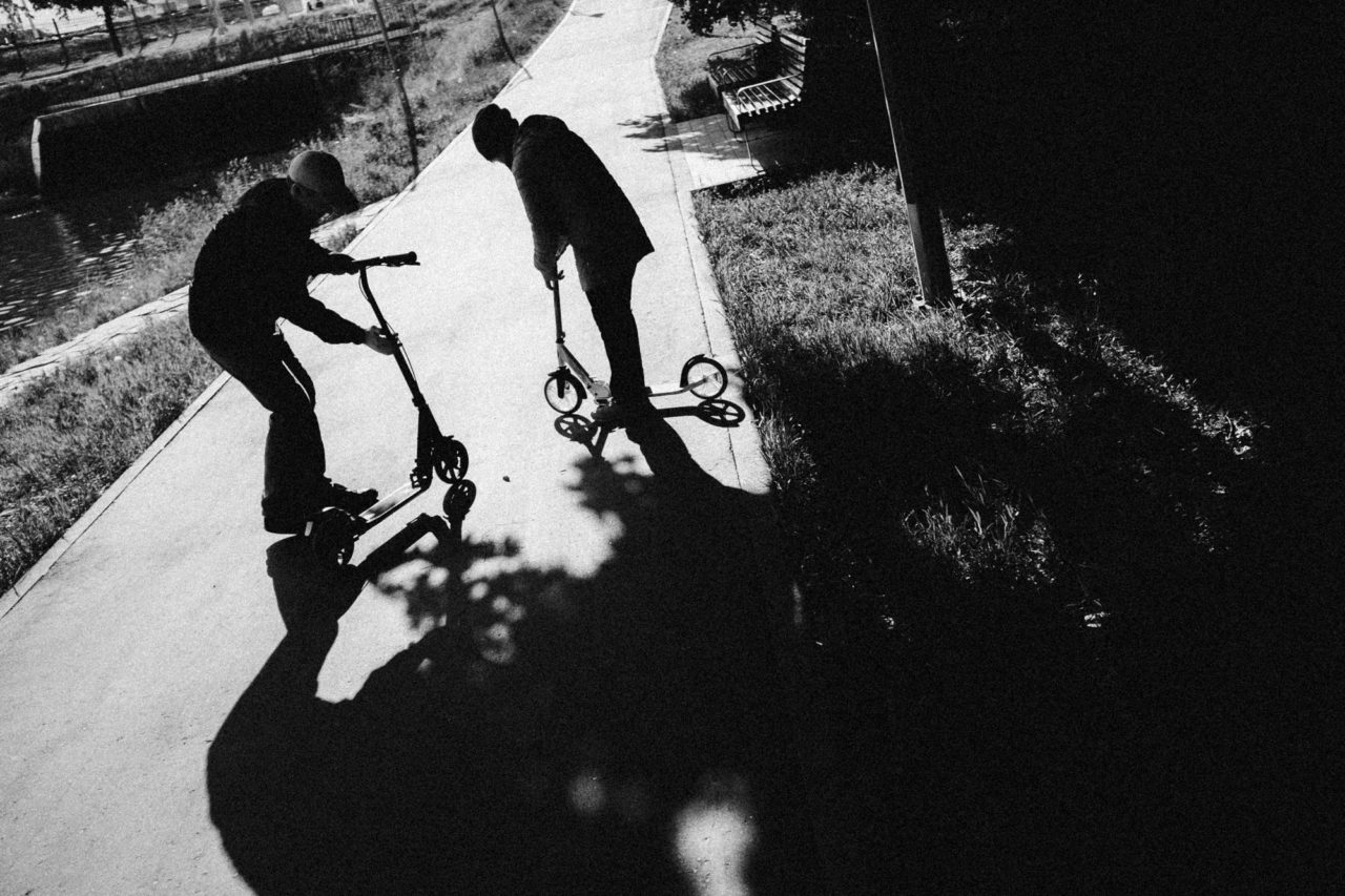 Виктор с мамой катаются на самокатах в парке. Вчера Виктор купил себе новый самокат, который давно хотел и на который копилФото: Владимир Аверин для ТД У Виктора расстройство аутистического спектра. Он никогда не смотрит в лицо собеседнику, ему сложно завести знакомство, а в случае конфликта он не может защитить себя. «Витя у нас особенный», — говорит Ирина.