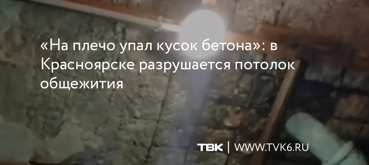 «На плечо упал кусок бетона»: в Красноярске разрушается потолок общежития