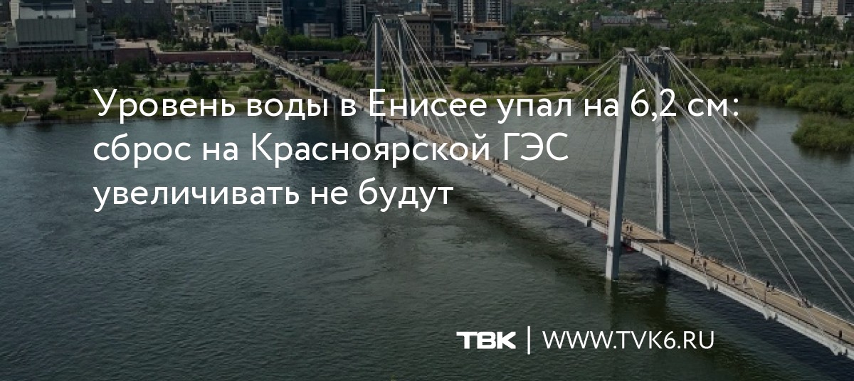 Уровень воды в Енисее упал на 6,2 см: сброс на Красноярской ГЭС увеличивать не будут