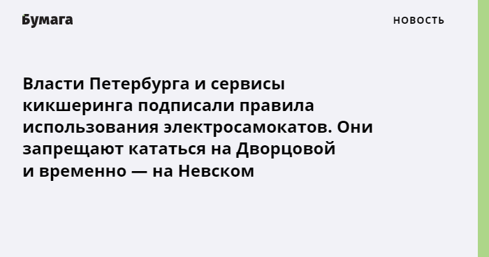 Смольный и сервисы аренды электросамокатов подписали соглашение о соблюдении правил использования средств индивидуальной мобильности. Об этом «Бумаге» рассказал источник, знакомый с содержанием совещания рабочей группы по электросамокатам, информацию о соглашении также опубликовал комитет по транспорту в своем телеграм-канале.