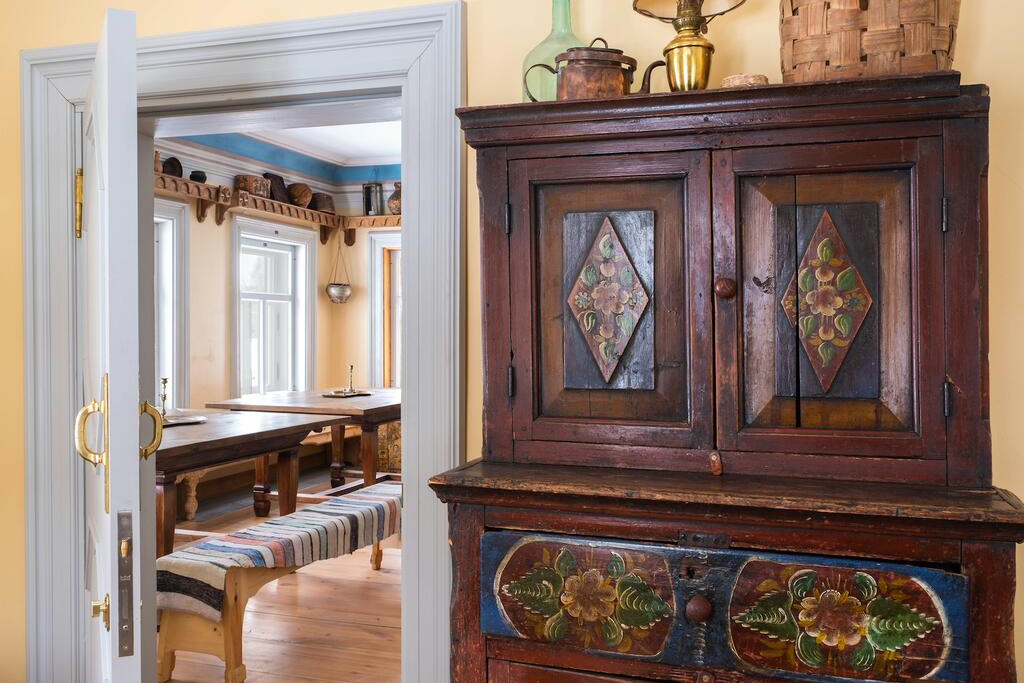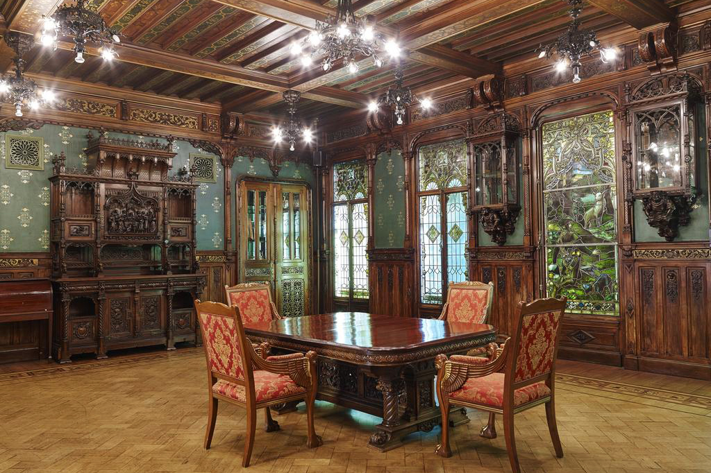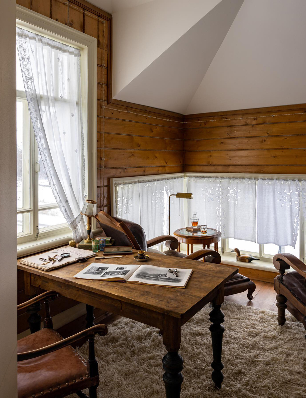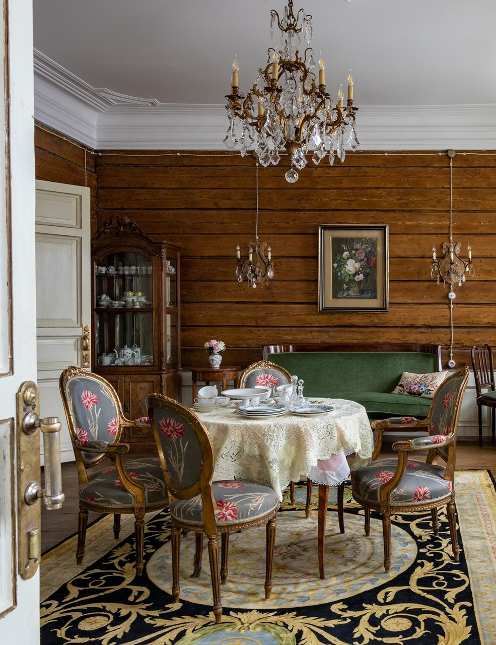В доме сохранили планировку и детали интерьера, восстановили потолки с лепниной и изразцовую печь, обновили санузлы и поставили камин. При этом Бушмариновы использовали исторические материалы и антикварные предметы конца XIX — начала XX века. Часть мебели и украшений привезли из Франции.