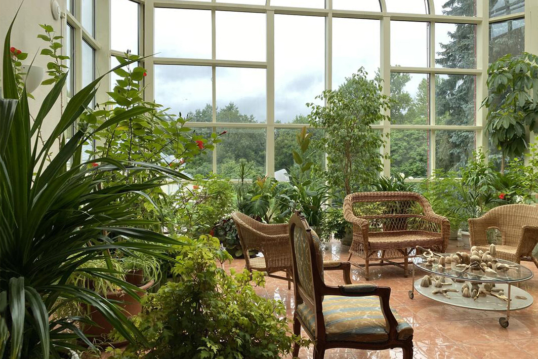 В «Соснах» впечатляют и конструктивистский главный корпус, и модернистский декор общественных пространств (разумеется, с обилием стекла и металла), и внушительные интерьеры сталинского периода. А главную аллею комплекса украшают бронзовые оленьи статуи работы немецких мастеров Йозефа Палленберга и Рихарда Фризе. Рассказывают, что их вывезли из имения Германа Геринга в качестве трофея после Второй мировой.