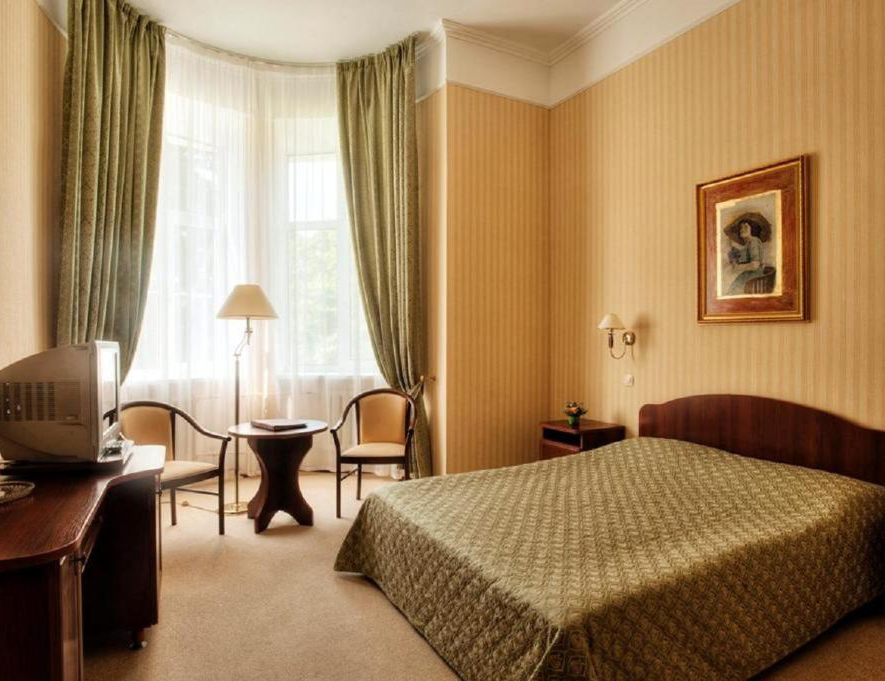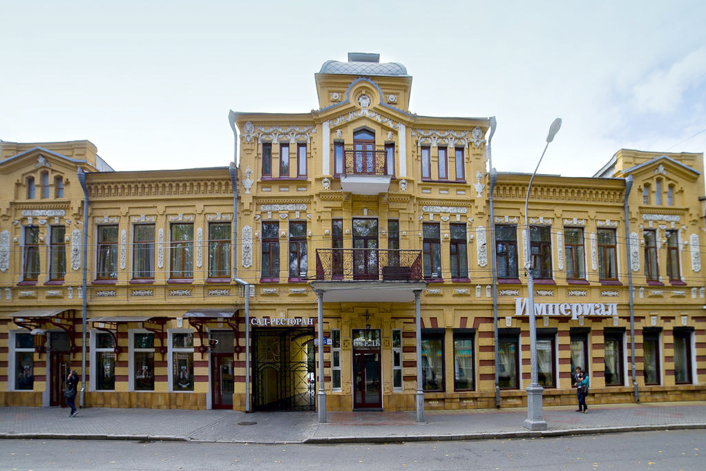 В советское время здесь была гостиница «Интурист», самая престижная в городе на тот момент. Сейчас за историческим фасадом находится современный корпус, в который можно попасть через галерею. Номера при этом стилизованы под начало XX века.