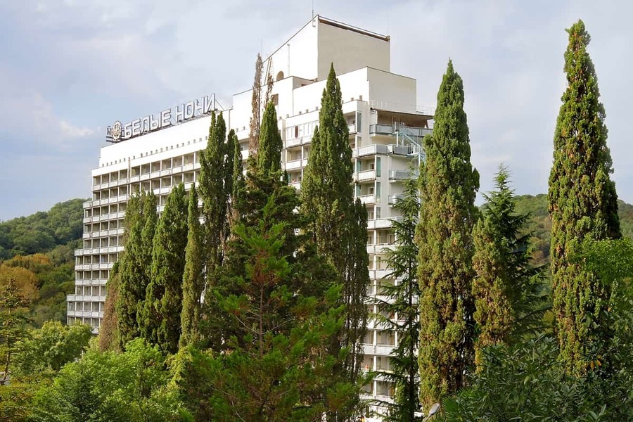 Санаторий «Белые ночи» построили в конце 1970-х в стиле советского модернизма, неподалеку от поселка Дагомыс. Помимо архитектуры санаторий привлекает ботаническим садом с почти двумя тысячами экзотических растений. В 2008 году здание реконструировали. В номерах ежегодно проводят косметический ремонт, но интерьеры все еще отсылают к совмоду.