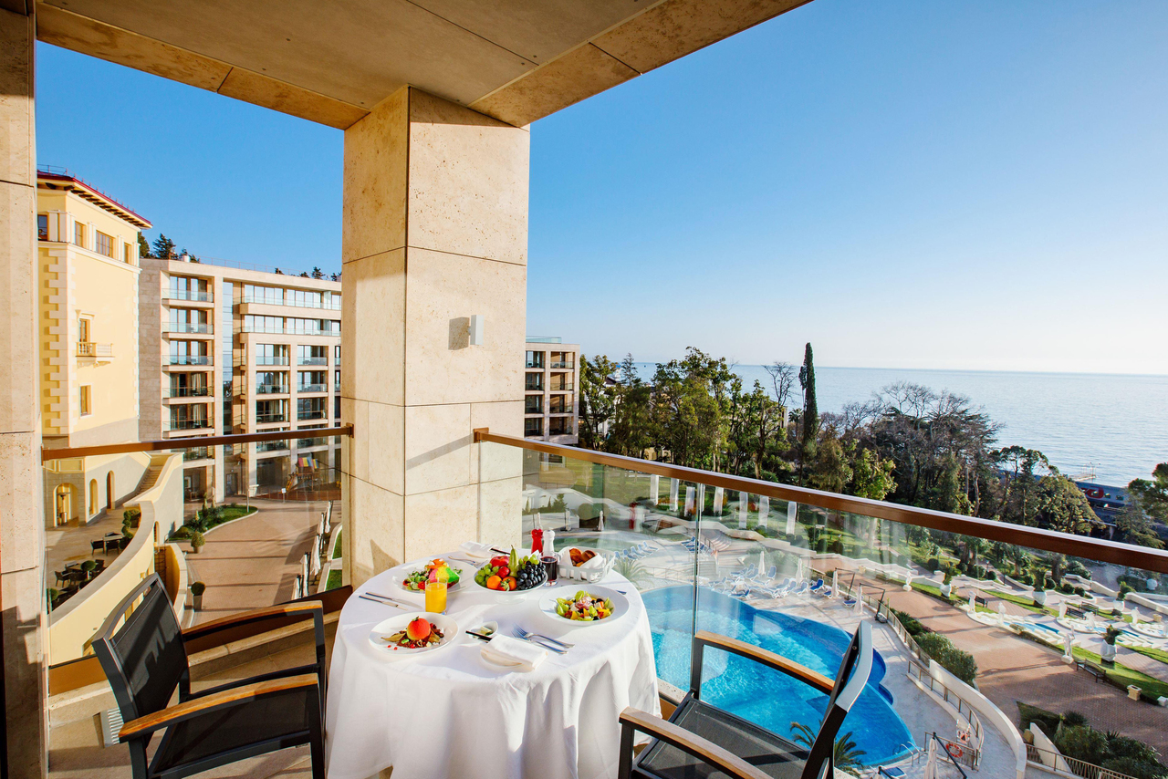 Пятизвездочный отель «Swissôtel Resort Сочи Камелия» находится в историческом здании гостиницы «Интурист» (да, тоже «Интурист»!) в парке Хостинского района Сочи. Здание построили в 1935 году по проекту архитектора Самойлова. Первоначально гостиница с фасадом в стиле ар-деко была частью санатория «Наука».